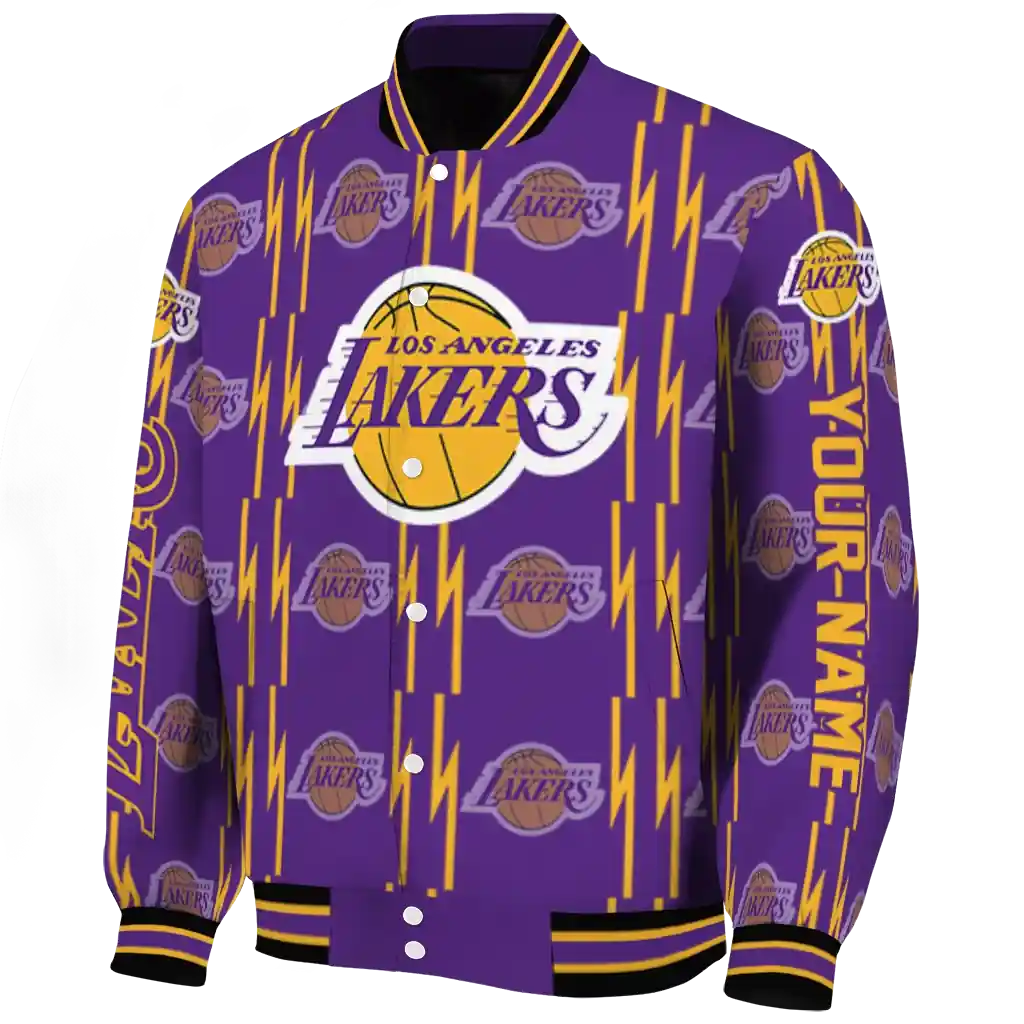 Customized Los Angeles Lakers Bolt Stripe Purple Varsity Jacket