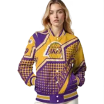 For the discerning NBA fan who values elevated style, this Custom Los Angeles Lakers Hexagon Cluster Purple Black Bomber Jacket from Los Angeles Lakers Jackets’s NBA Fan Pro boasts premium construction for lasting comfort and a proud display of team spirit. Its distinctive design and superior quality offer exceptional value, allowing you to wear your fandom with the same pride as your favorite jersey.