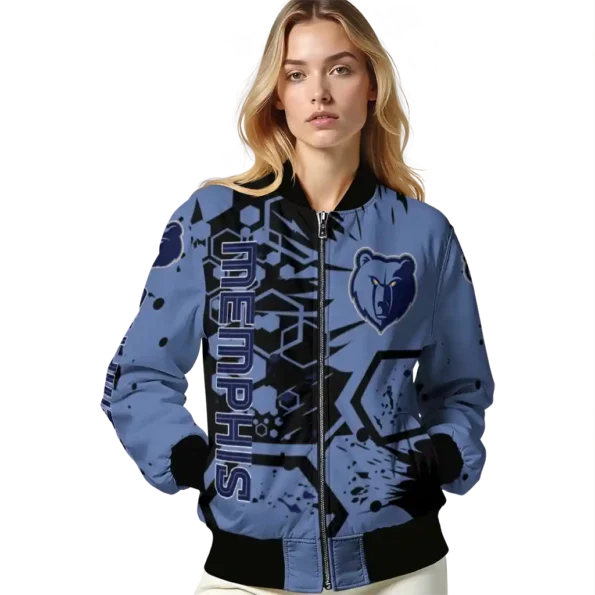 Customized Memphis Grizzlies Hexagon Cluster Blue Black Bomber Jacket