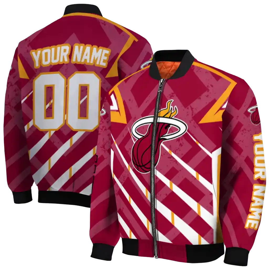 For the discerning NBA fan who values elevated style, this Personalized Miami Heat Pyramid Shapes Red Bomber Jacket from Miami Heat Jackets’s NBA Fan Pro boasts premium construction for lasting comfort and a proud display of team spirit. Its distinctive design and superior quality offer exceptional value, allowing you to wear your fandom with the same pride as your favorite jersey.
