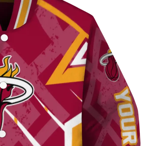 Here’s a closer look at what makes our Customized Miami Heat Chevron Angles Red Varsity Jacket stand out: