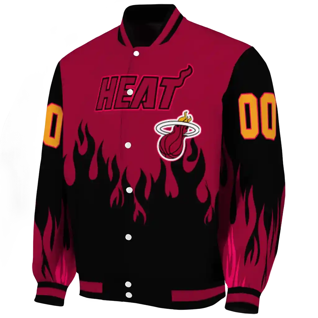 A true must-have for the sophisticated NBA enthusiast, this Customized Miami Heat Flame Border Red Black Varsity Jacket from Miami Heat Jackets offers quality construction for durable, all-day comfort – ideal for showcasing your team pride. Its unique design and superior build provide exceptional value, making it the perfect way to embody your team identity like an iconic jersey.