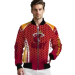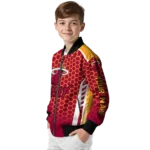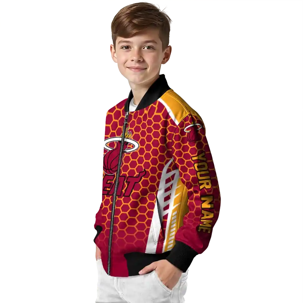Uncover the details that make this Customized Miami Heat Hexagon Grid Red Bomber Jacket a truly exceptional piece.