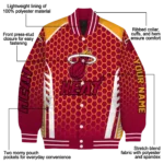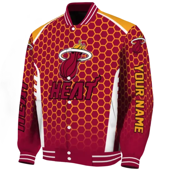 Here’s a closer look at what makes our Customized Miami Heat Hexagon Grid Red Varsity Jacket stand out: