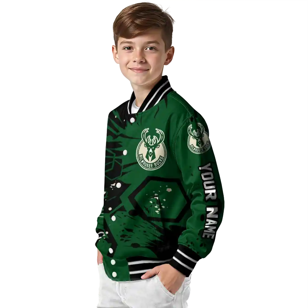 Custom Milwaukee Bucks Hexagon Cluster Green Black Varsity Jacket