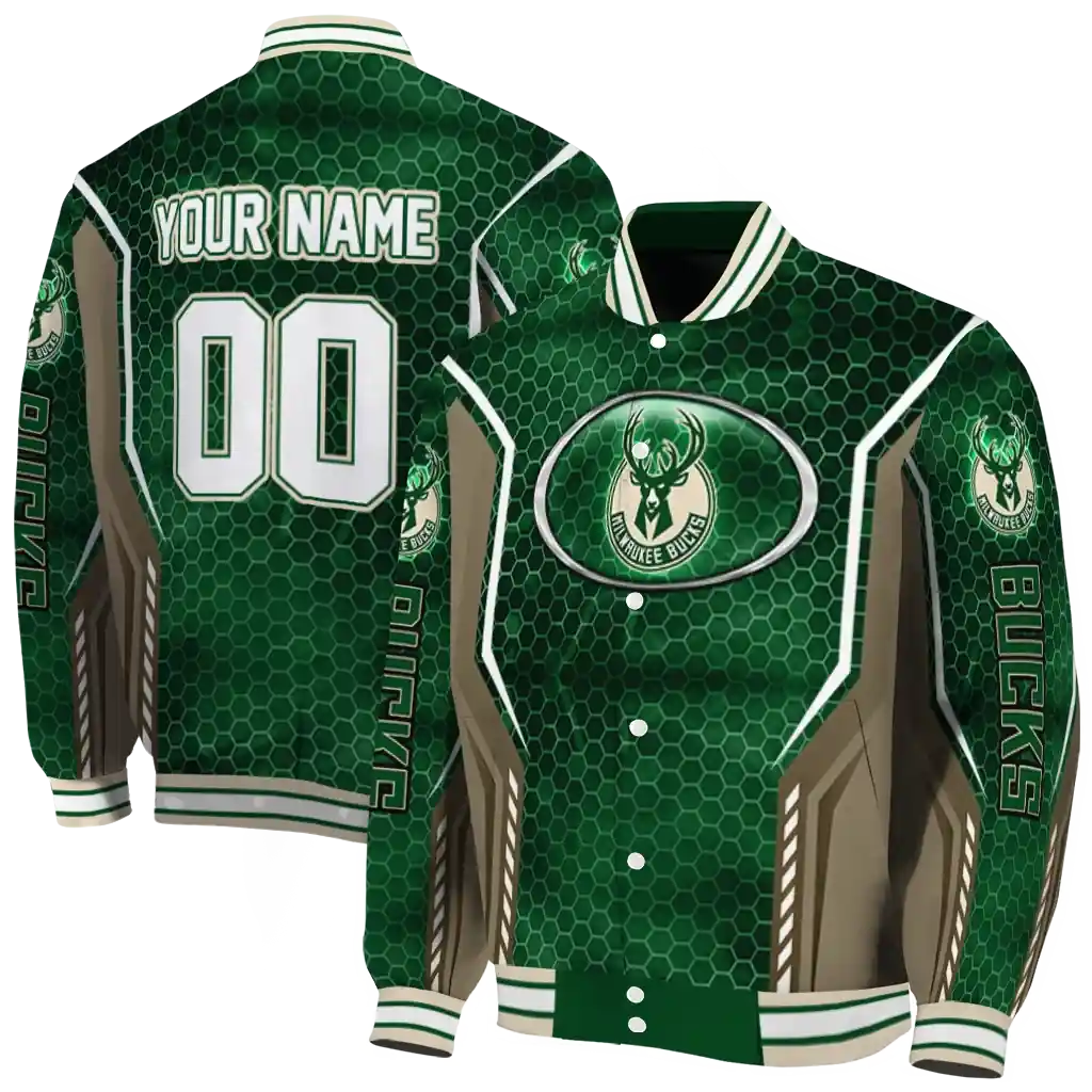 For the discerning NBA fan who values elevated style, this Custom Milwaukee Bucks Hexagon Cluster Green Black Bomber Jacket from Milwaukee Bucks Jackets’s NBA Fan Pro boasts premium construction for lasting comfort and a proud display of team spirit. Its distinctive design and superior quality offer exceptional value, allowing you to wear your fandom with the same pride as your favorite jersey.