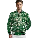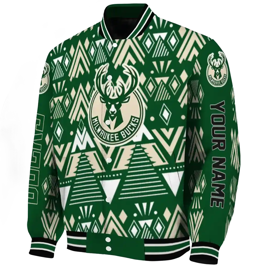 Here’s a closer look at what makes our Custom Milwaukee Bucks Pyramid Shapes Green Varsity Jacket stand out: