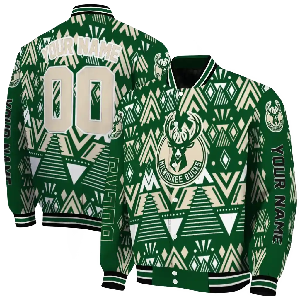 Custom Milwaukee Bucks Pyramid Shapes Green Varsity Jacket