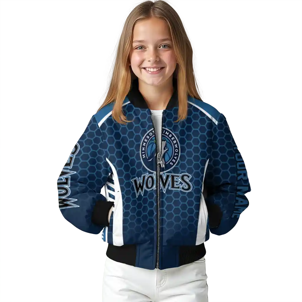 Custom Minnesota Timberwolves Hexagon Grid Midnight Blue Bomber Jacket