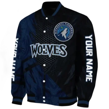 For the discerning NBA fan who values elevated style, this Customized Minnesota Timberwolves Hexagon Mesh Midnight Blue Black Bomber Jacket from Minnesota Timberwolves Jackets’s NBA Fan Pro boasts premium construction for lasting comfort and a proud display of team spirit. Its distinctive design and superior quality offer exceptional value, allowing you to wear your fandom with the same pride as your favorite jersey.