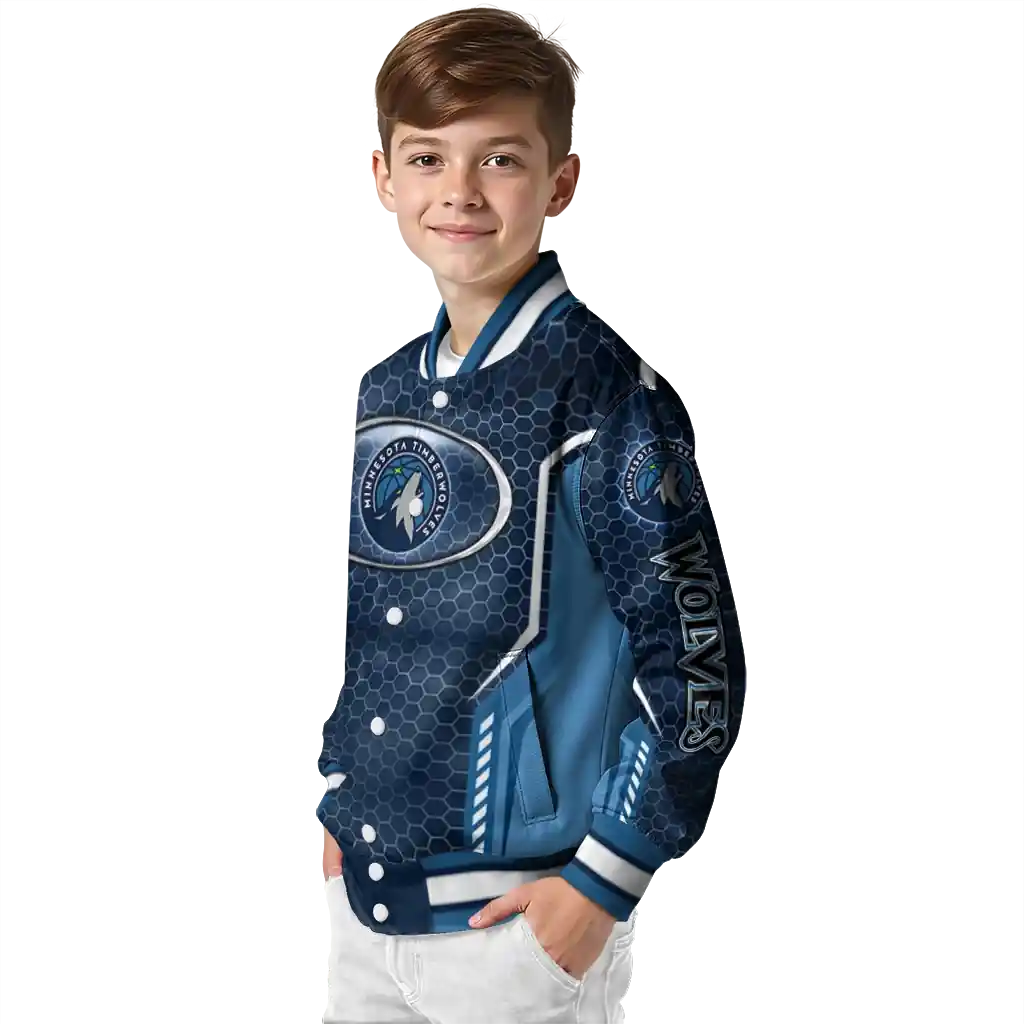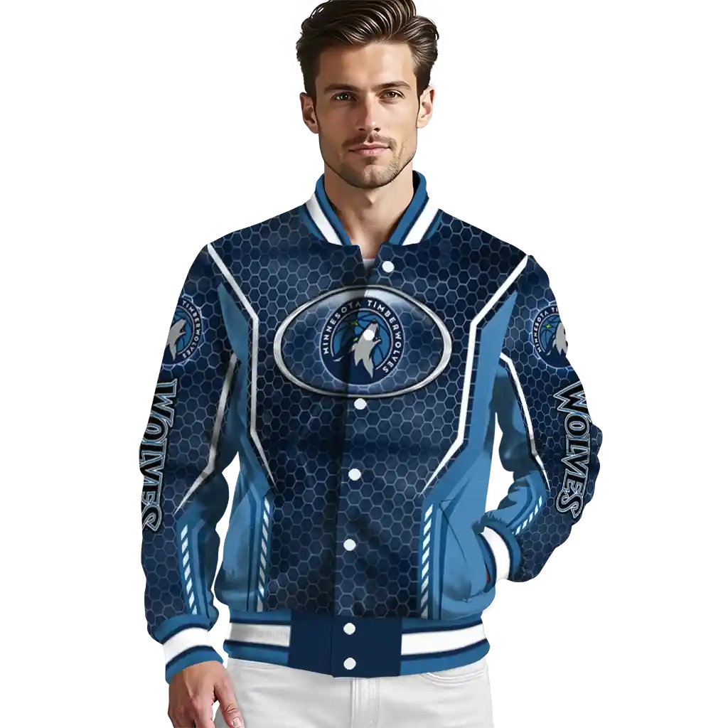 For the discerning NBA fan who values elevated style, this Custom Minnesota Timberwolves Hexagon Grid Midnight Blue Bomber Jacket from Minnesota Timberwolves Jackets’s NBA Fan Pro boasts premium construction for lasting comfort and a proud display of team spirit. Its distinctive design and superior quality offer exceptional value, allowing you to wear your fandom with the same pride as your favorite jersey.