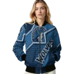 Uncover the details that make this Personalized Minnesota Timberwolves Star Burst Midnight Blue Bomber Jacket a truly exceptional piece.