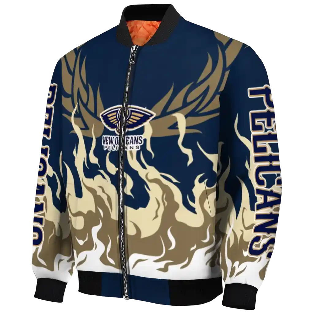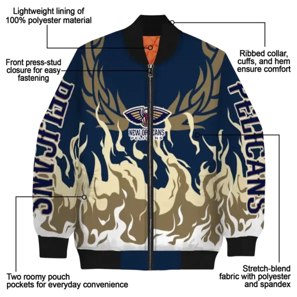 Uncover the details that make this Custom New Orleans Pelicans Winged Blaze Navy White Bomber Jacket a truly exceptional piece.