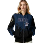 Uncover the details that make this Customized New Orleans Pelicans Flame Border Navy Black Bomber Jacket a truly exceptional piece.