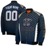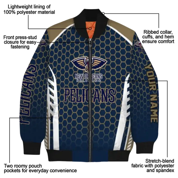 Customized New Orleans Pelicans Hexagon Grid Navy Bomber Jacket