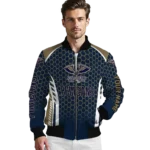 Uncover the details that make this Customized New Orleans Pelicans Hexagon Grid Navy Bomber Jacket a truly exceptional piece.