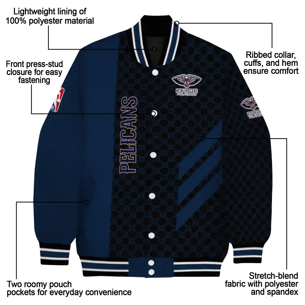 New Orleans Pelicans Triple Side Stripes Navy Black Varsity Jacket