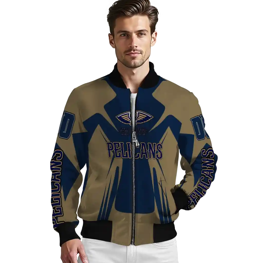 Personalized New Orleans Pelicans Spider Mark Navy Bomber Jacket