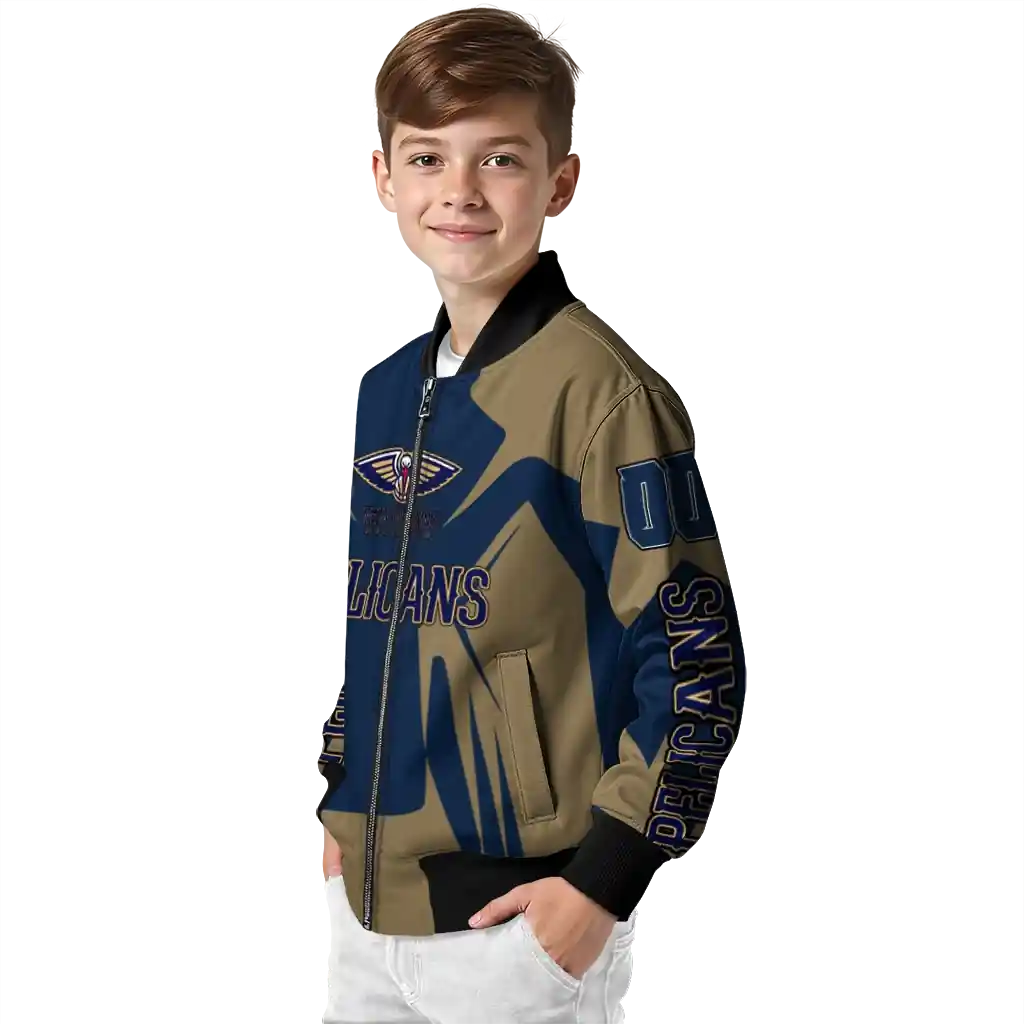 Uncover the details that make this Personalized New Orleans Pelicans Spider Mark Navy Bomber Jacket a truly exceptional piece.