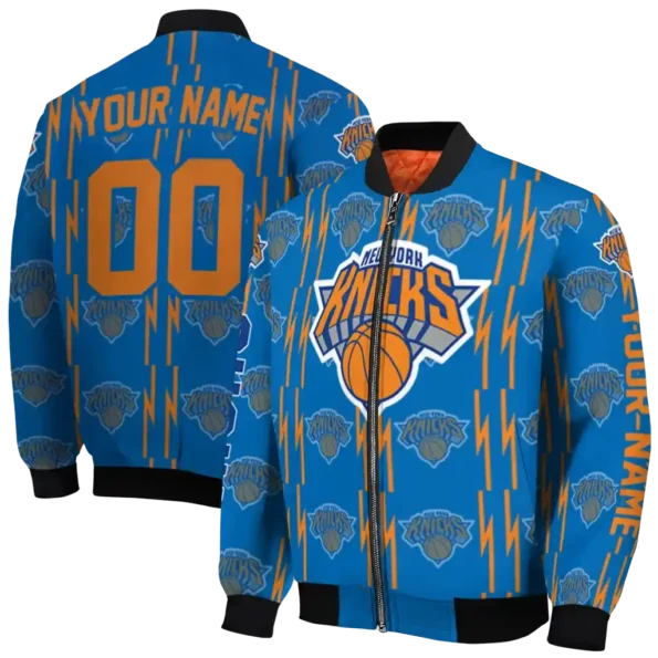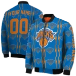 Customized New York Knicks Bolt Stripe Blue Bomber Jacket