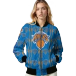 Uncover the details that make this Customized New York Knicks Bolt Stripe Blue Bomber Jacket a truly exceptional piece.