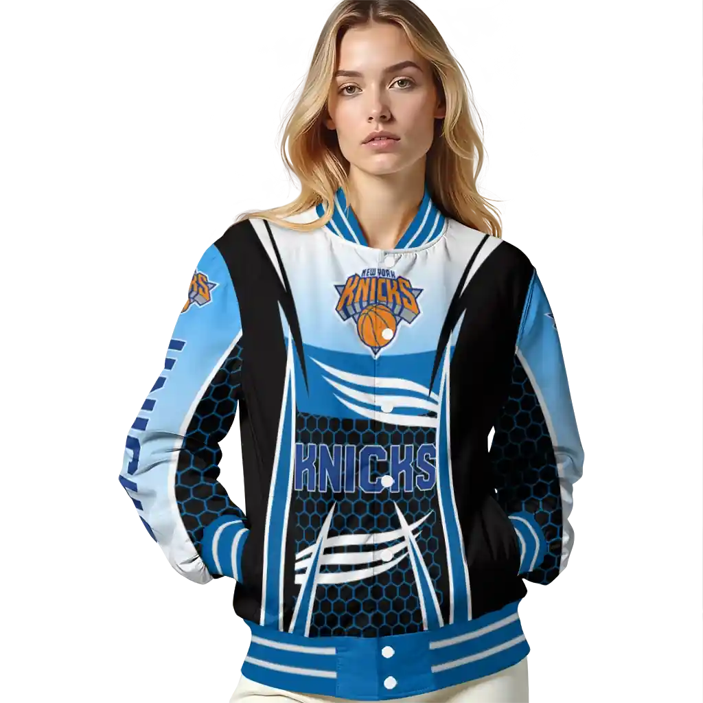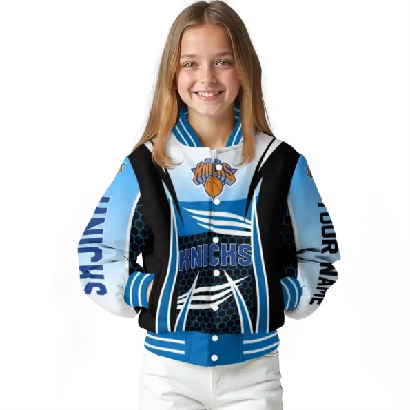 Personalized New York Knicks Mesh Effect Blue Black Varsity Jacket