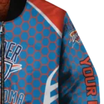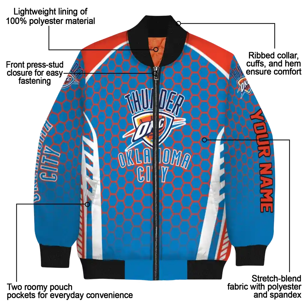 Uncover the details that make this Custom Oklahoma City Thunder Hexagon Grid Blue Bomber Jacket a truly exceptional piece.