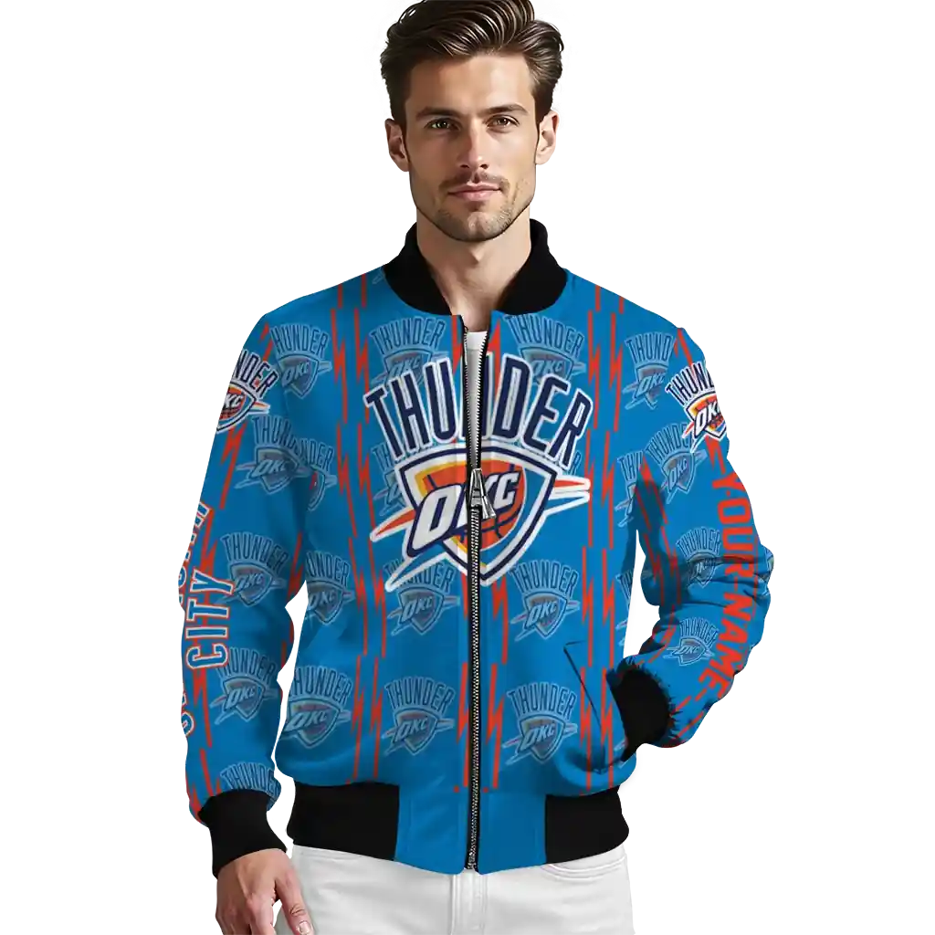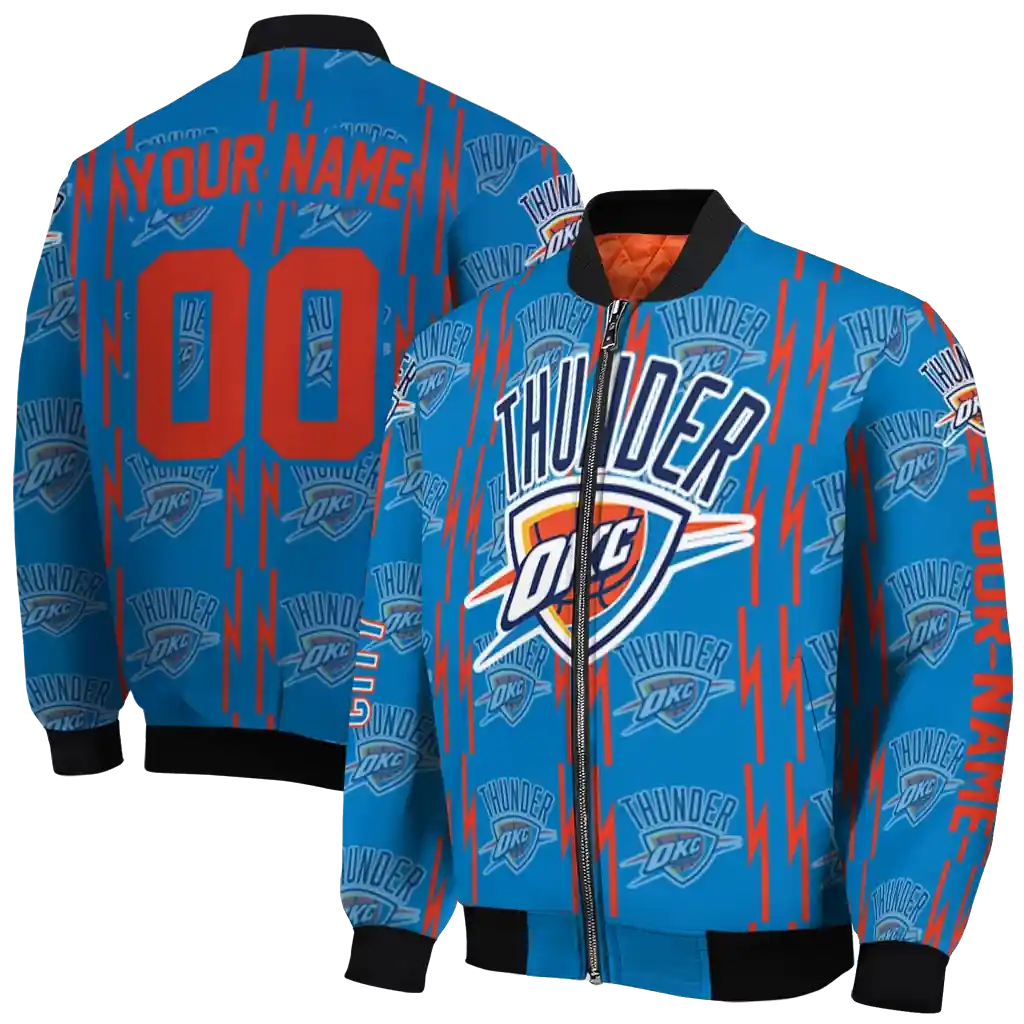 Personalized Oklahoma City Thunder Bolt Stripe Blue Bomber Jacket