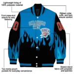 Here’s a closer look at what makes our Personalized Oklahoma City Thunder Flame Border Blue Black Varsity Jacket stand out: