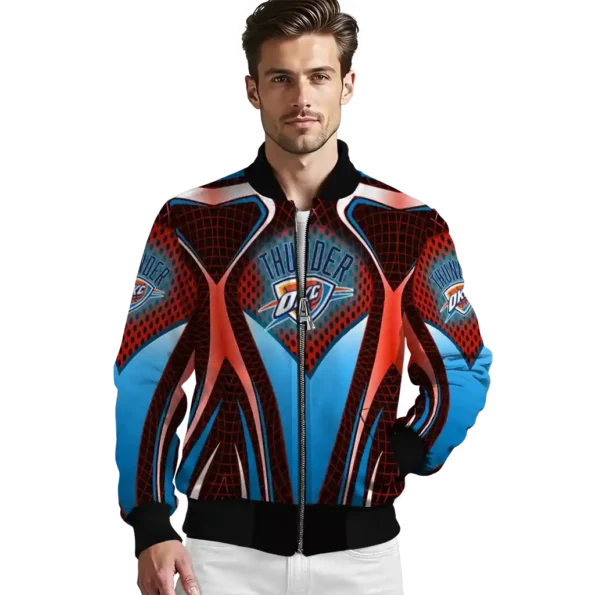 For the discerning NBA fan who values elevated style, this Custom Oklahoma City Thunder Mesh Effect Blue Black Bomber Jacket from Oklahoma City Thunder Jackets’s NBA Fan Pro boasts premium construction for lasting comfort and a proud display of team spirit. Its distinctive design and superior quality offer exceptional value, allowing you to wear your fandom with the same pride as your favorite jersey.