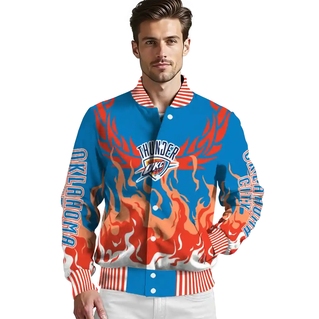 Personalized Oklahoma City Thunder Winged Blaze Blue White Varsity Jacket