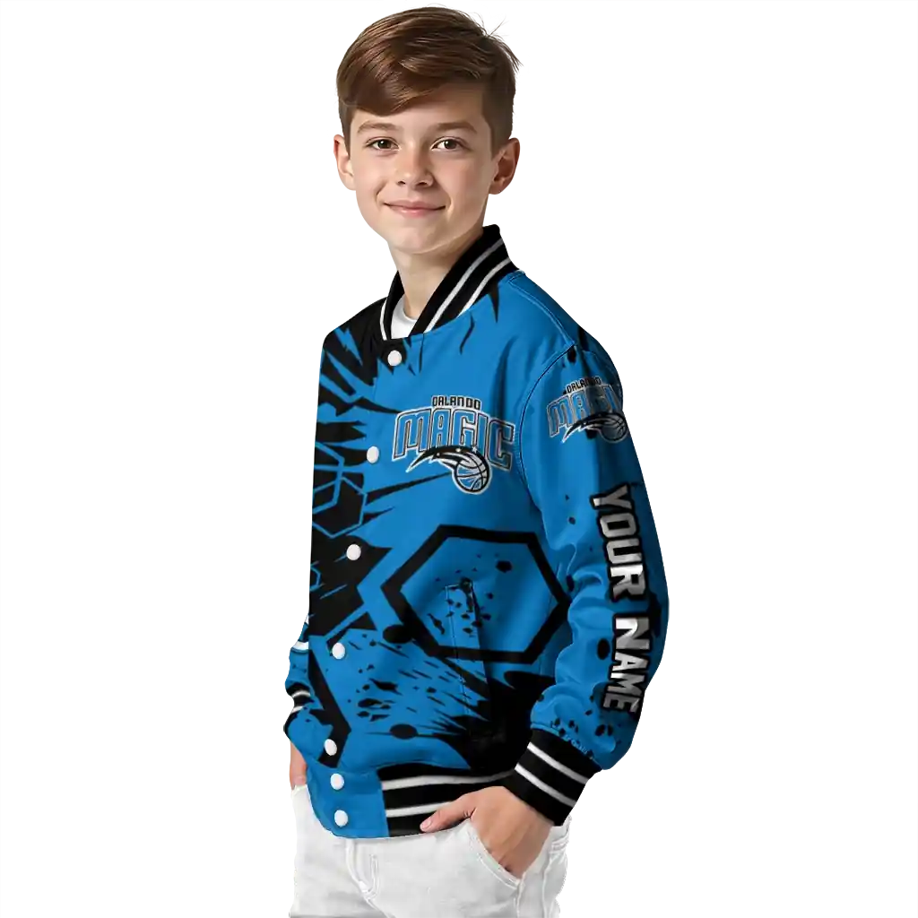 Personalized Orlando Magic Hexagon Cluster Blue Black Varsity Jacket