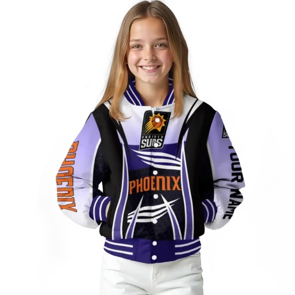 For the discerning NBA fan who values elevated style, this Custom Phoenix Suns Mesh Effect Purple Black Bomber Jacket from Phoenix Suns Jackets’s NBA Fan Pro boasts premium construction for lasting comfort and a proud display of team spirit. Its distinctive design and superior quality offer exceptional value, allowing you to wear your fandom with the same pride as your favorite jersey.