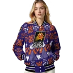 For the discerning NBA fan who values elevated style, this Customized Phoenix Suns Pyramid Shapes Purple Bomber Jacket from Phoenix Suns Jackets’s NBA Fan Pro boasts premium construction for lasting comfort and a proud display of team spirit. Its distinctive design and superior quality offer exceptional value, allowing you to wear your fandom with the same pride as your favorite jersey.