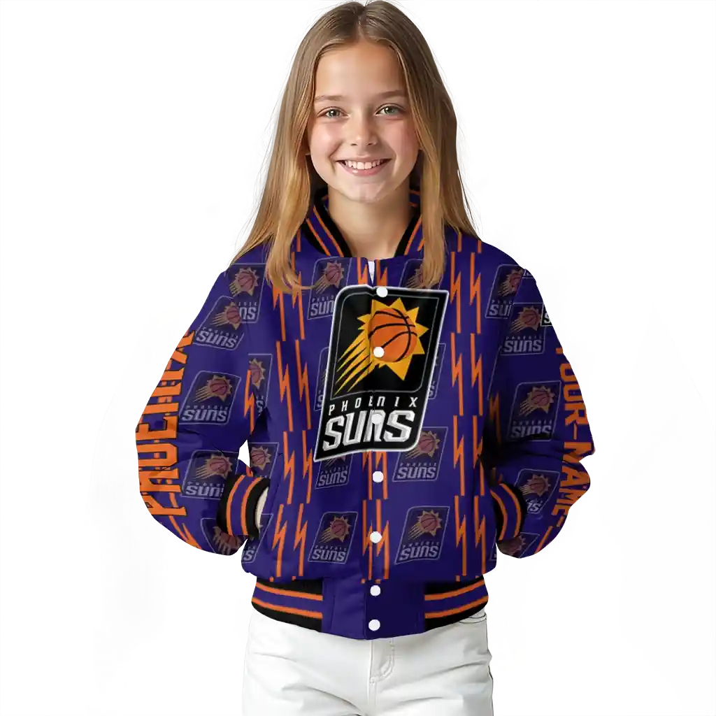 Personalized Phoenix Suns Bolt Stripe Purple Varsity Jacket