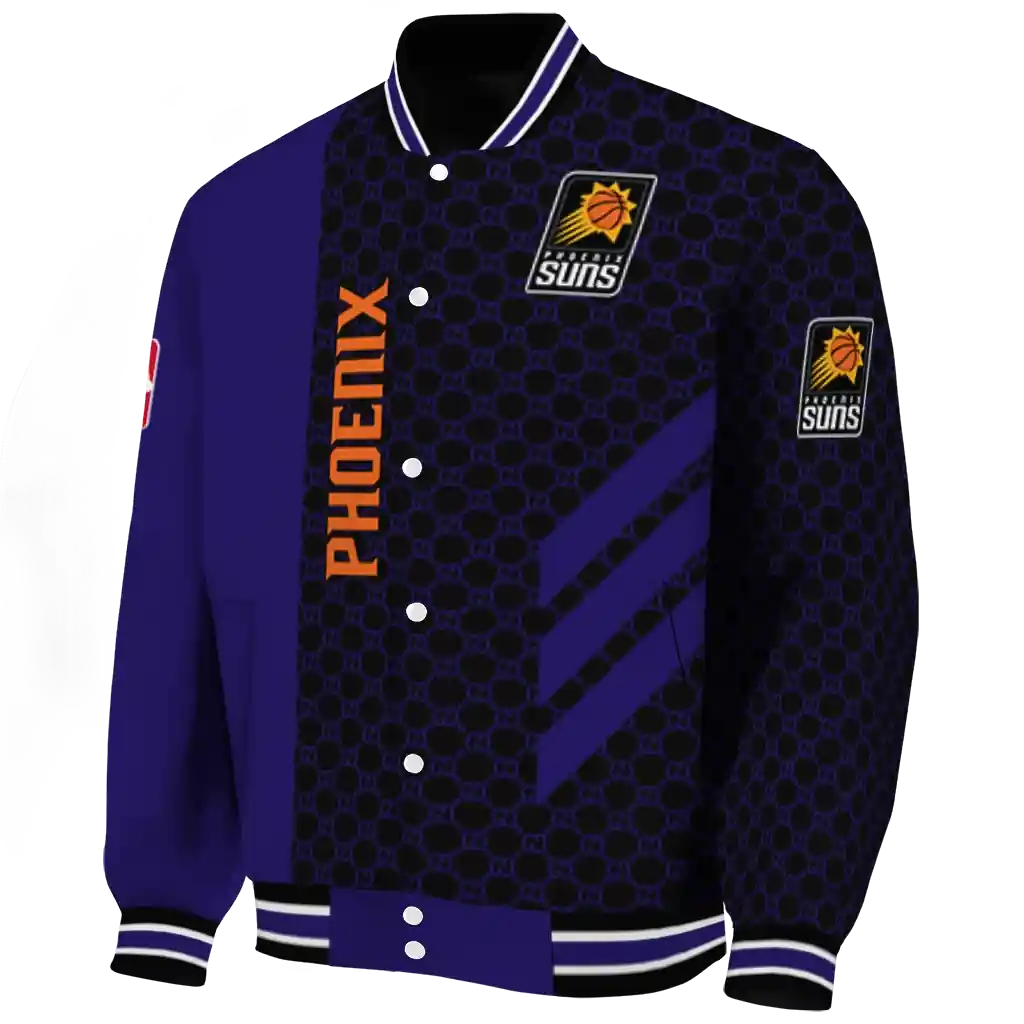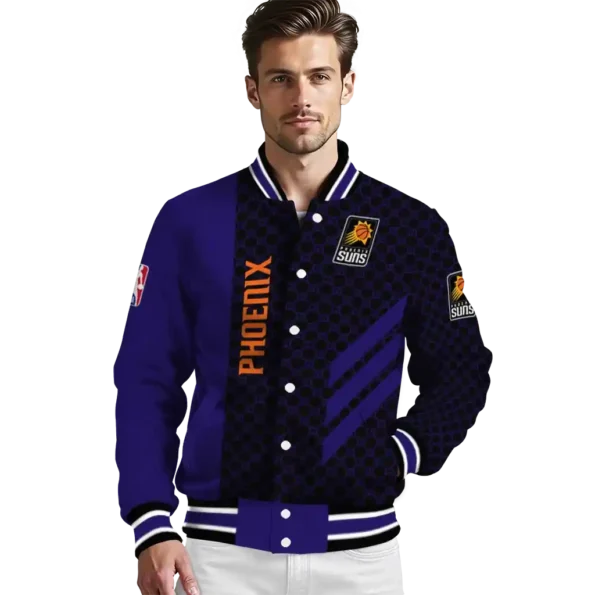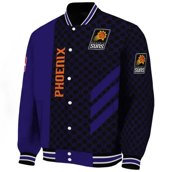 For the discerning NBA fan who values elevated style, this Custom Phoenix Suns Mesh Effect Purple Black Bomber Jacket from Phoenix Suns Jackets’s NBA Fan Pro boasts premium construction for lasting comfort and a proud display of team spirit. Its distinctive design and superior quality offer exceptional value, allowing you to wear your fandom with the same pride as your favorite jersey.