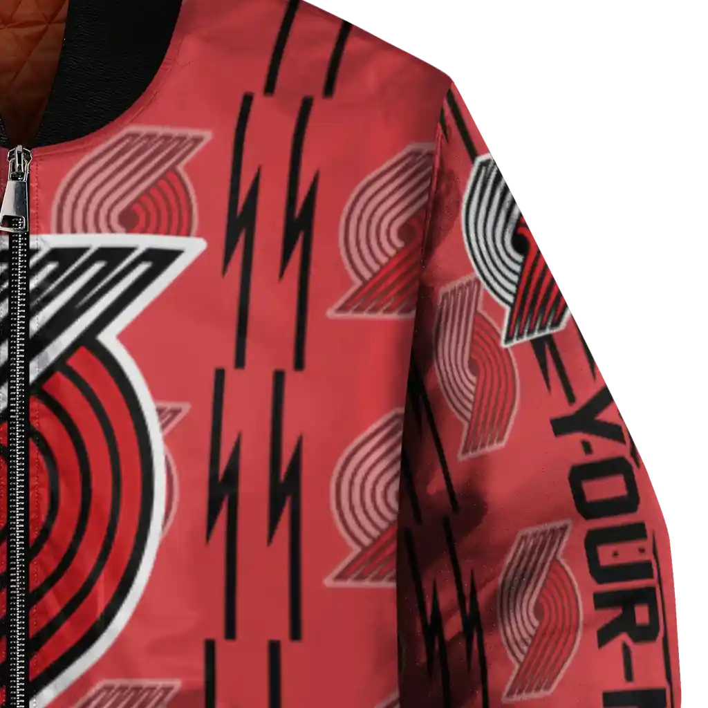 Uncover the details that make this Custom Portland Trail Blazers Bolt Stripe Red Bomber Jacket a truly exceptional piece.