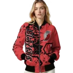 Uncover the details that make this Personalized Portland Trail Blazers Hexagon Cluster Red Black Bomber Jacket a truly exceptional piece.