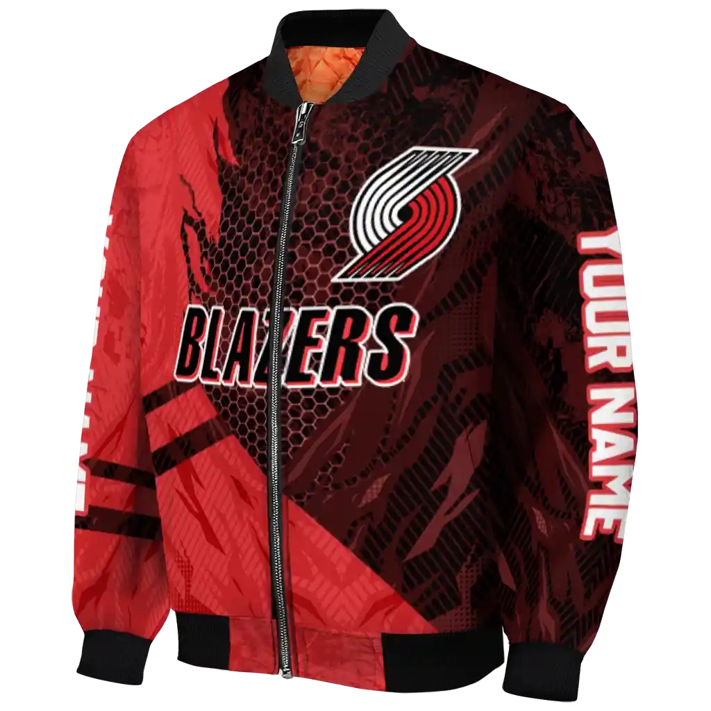 Personalized Portland Trail Blazers Hexagon Mesh Red Black Bomber Jacket