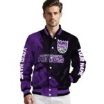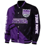 Here’s a closer look at what makes our Custom Sacramento Kings Hexagon Mesh Purple Black Varsity Jacket stand out:
