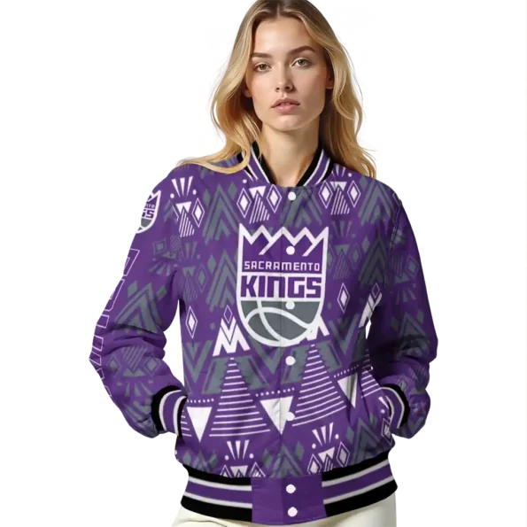 Custom Sacramento Kings Pyramid Shapes Purple Varsity Jacket