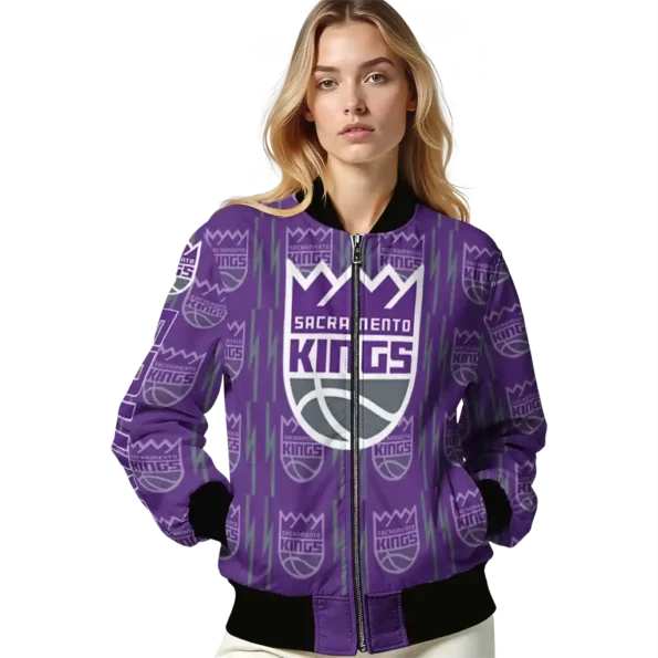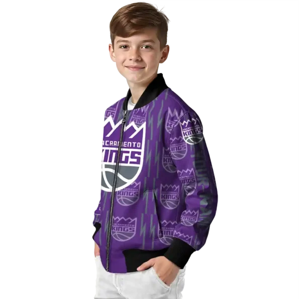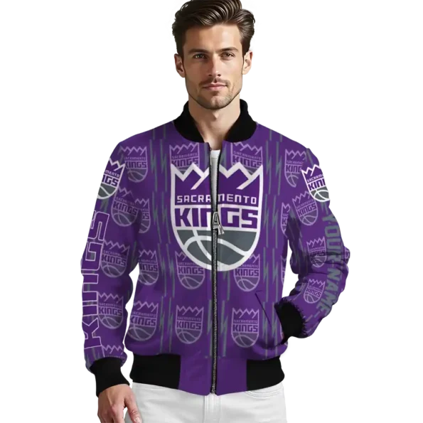 Uncover the details that make this Customized Sacramento Kings Bolt Stripe Purple Bomber Jacket a truly exceptional piece.