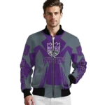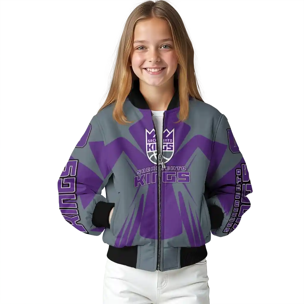 Uncover the details that make this Customized Sacramento Kings Spider Mark Purple Bomber Jacket a truly exceptional piece.