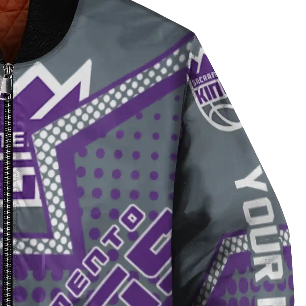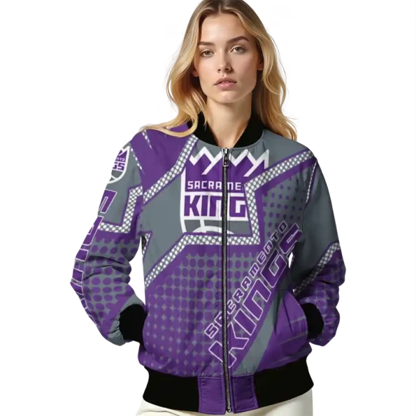 Uncover the details that make this Customized Sacramento Kings Star Burst Purple Bomber Jacket a truly exceptional piece.