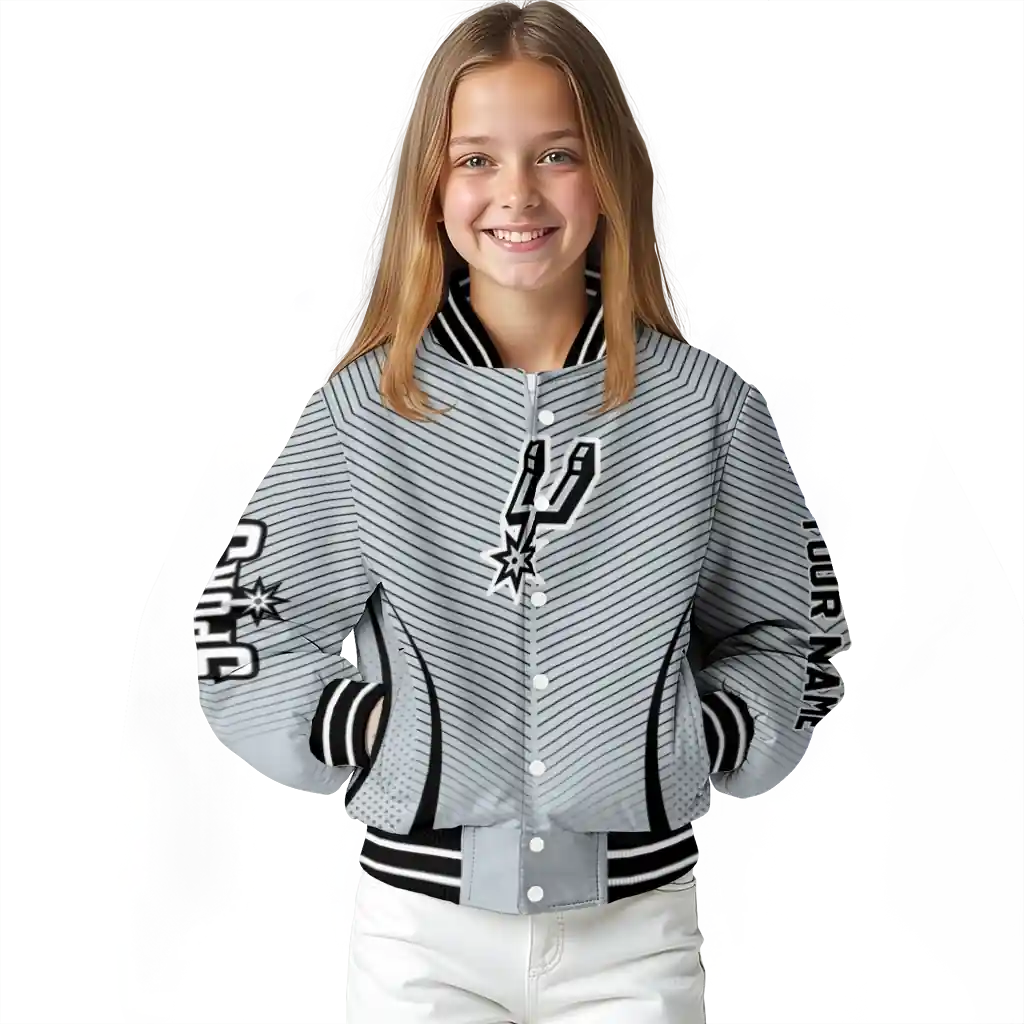 For the discerning NBA fan who values elevated style, this Customized San Antonio Spurs Power Plate Silver Bomber Jacket from San Antonio Spurs Jackets’s NBA Fan Pro boasts premium construction for lasting comfort and a proud display of team spirit. Its distinctive design and superior quality offer exceptional value, allowing you to wear your fandom with the same pride as your favorite jersey.