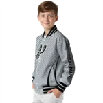 Here’s a closer look at what makes our Custom San Antonio Spurs Chevron Arrow Silver Varsity Jacket stand out: