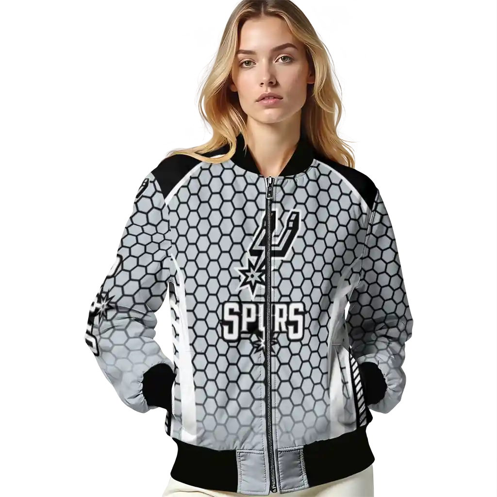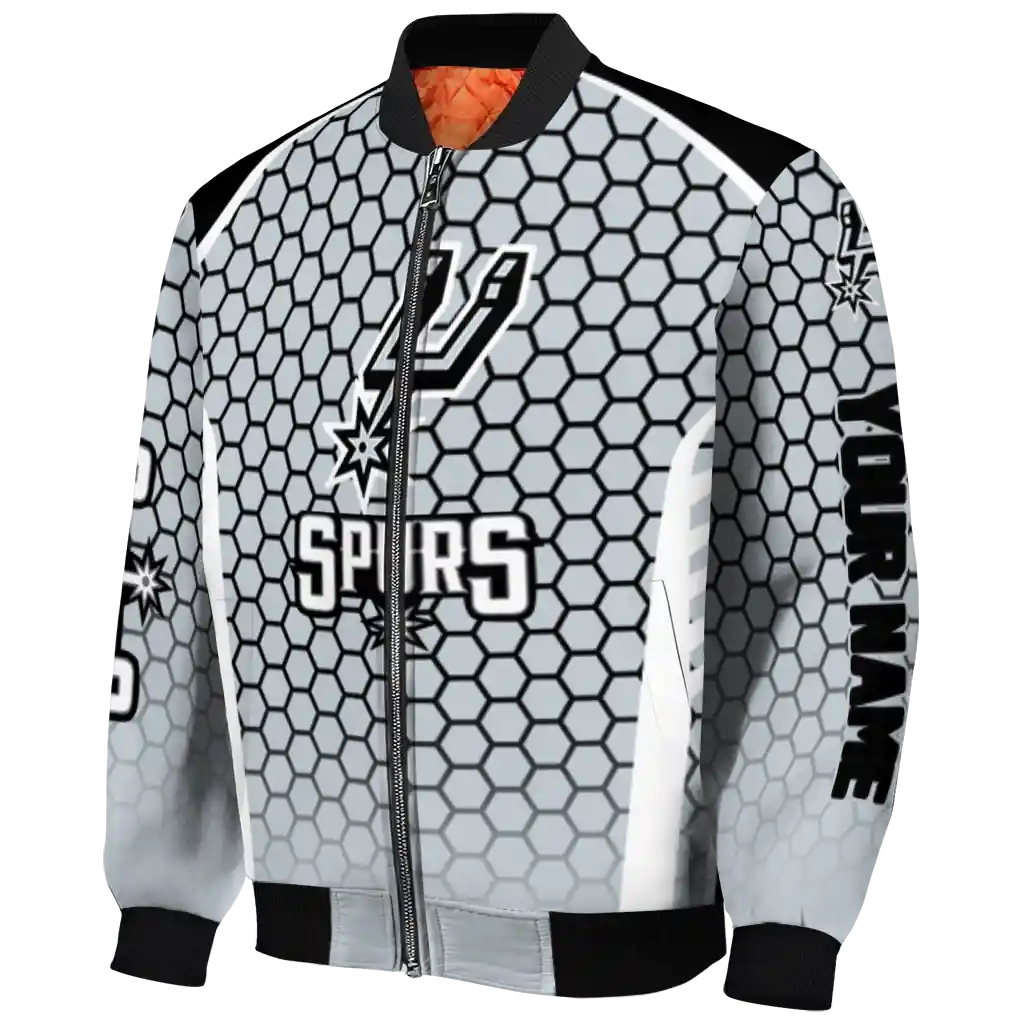 Custom San Antonio Spurs Hexagon Grid Silver Bomber Jacket
