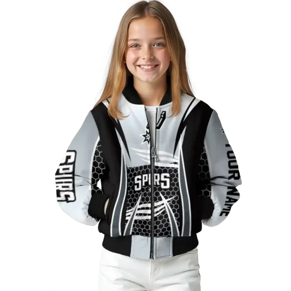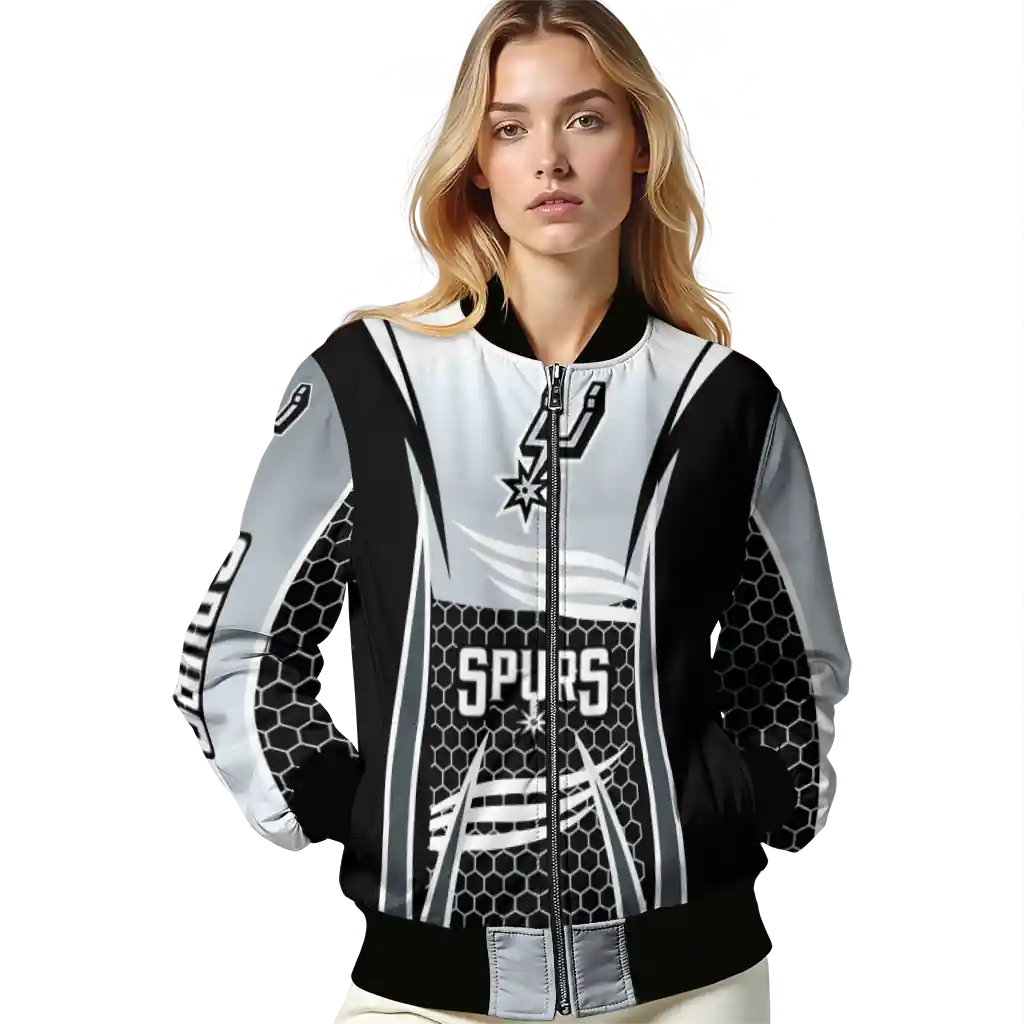 Custom San Antonio Spurs Mesh Effect Silver Black Bomber Jacket