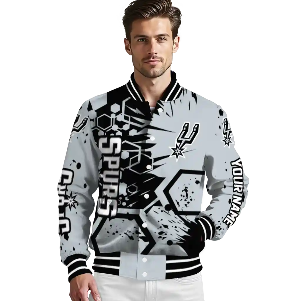 Customized San Antonio Spurs Hexagon Cluster Silver Black Varsity Jacket