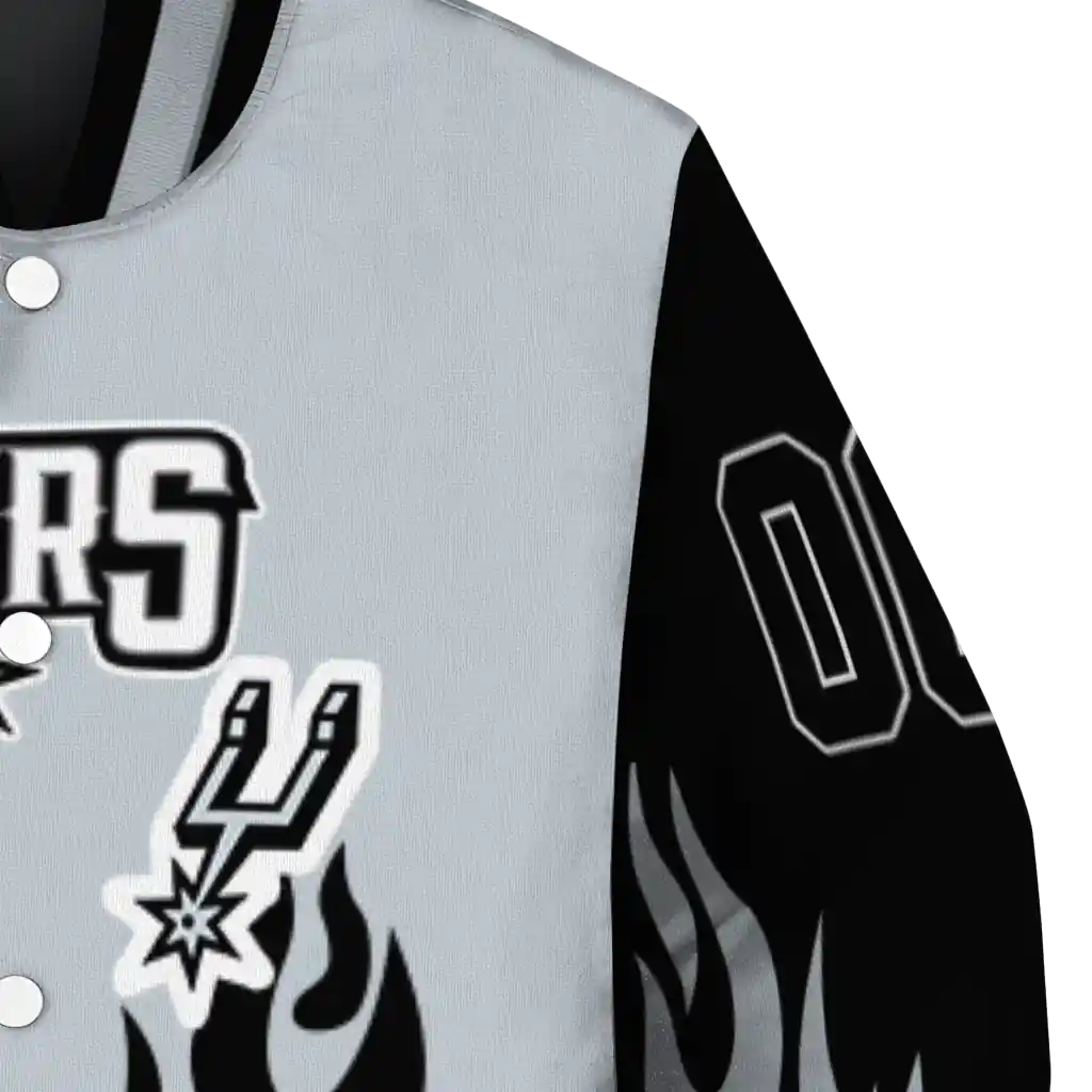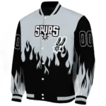 Personalized San Antonio Spurs Flame Border Silver Black Varsity Jacket